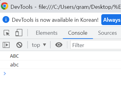 //ABC대문자를 toLowerCase함수를 통해서 소문자로 변환